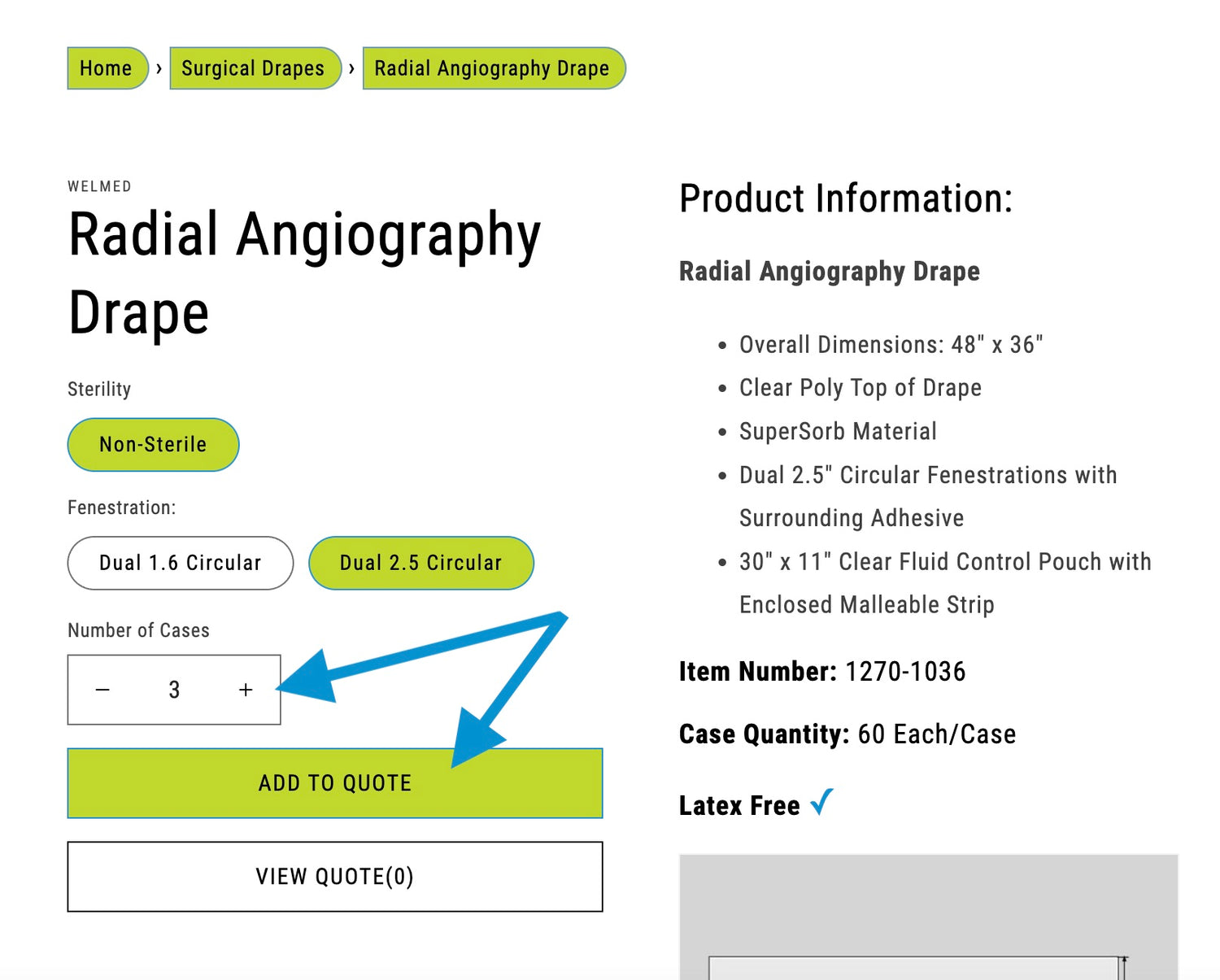 Welmed’s “Quote Cart” is an efficient way for our website visitors and of course, our loyal customers, to Request a Quote for Welmed’s Disposable Medical Products. It’s just like placing products in a Shopping Cart when ordering online!