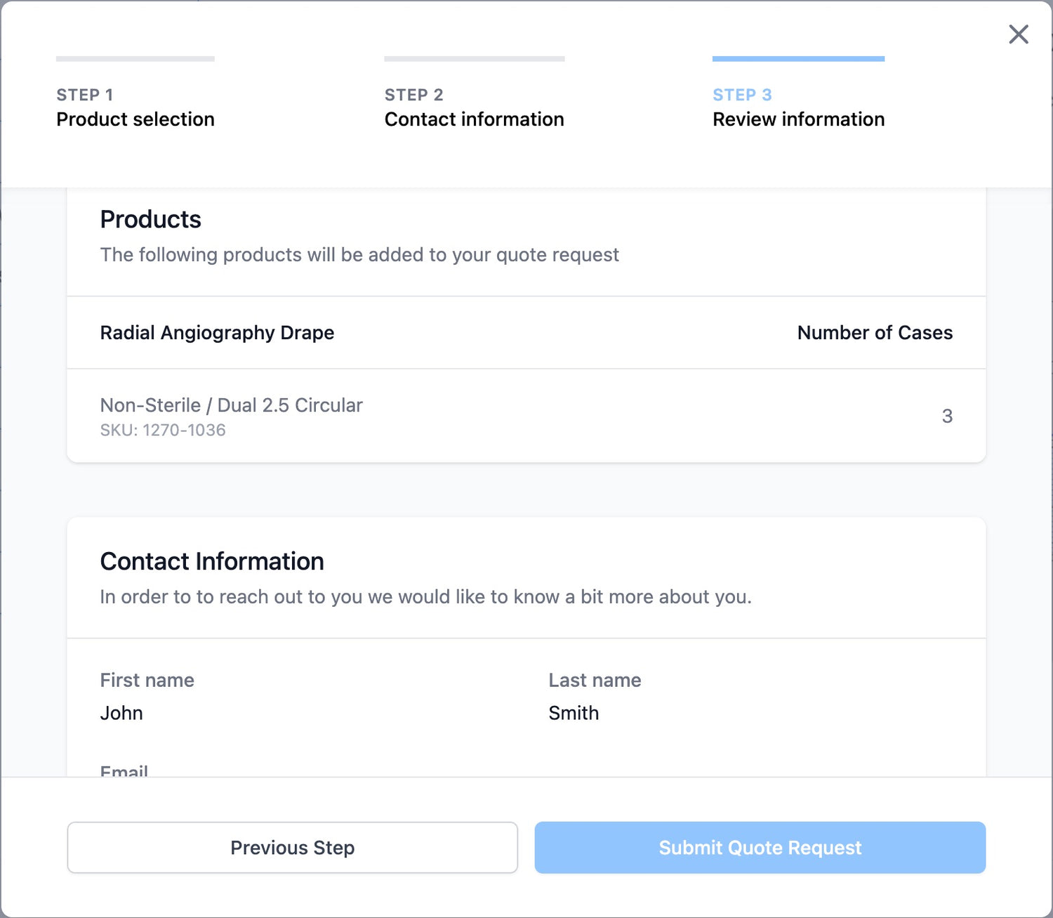 - Continue reviewing our Disposable Medical Products, adding products to your Quote Cart as needed.