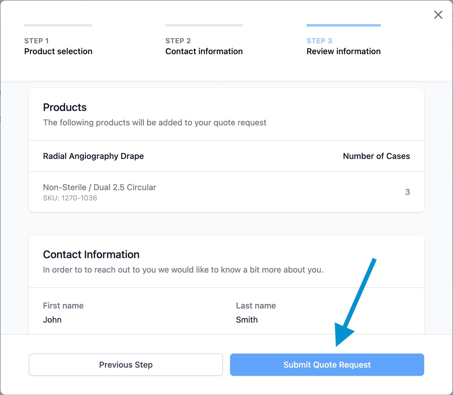 - Once you are complete with adding all of your products, simply fill-out the Quote Form and click Submit.
